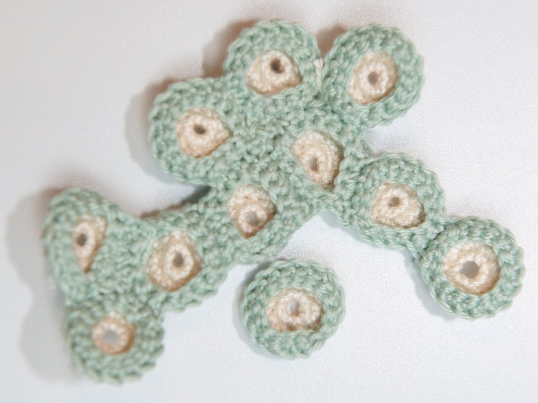 Du kannst deine Micromussa Kolonie in beliebigen Größenhäkeln. Ein einzelnes Micromussa Element hat einen Durchmesser von 2 cm.