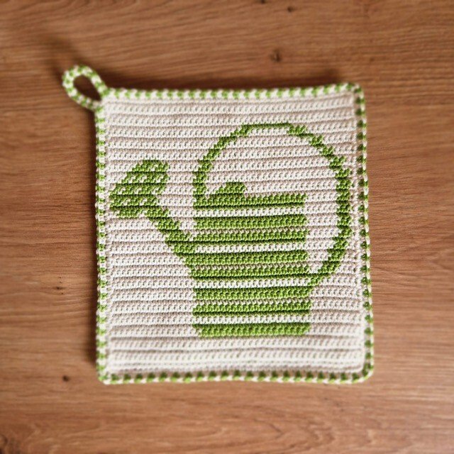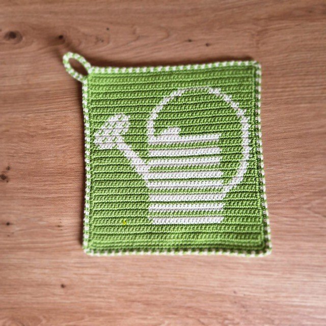 Häkelanleitung Topflappen "Gießkanne"