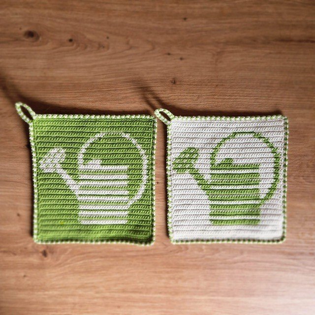 Diese Topflappen sind der Klassiker unter den gehäkelten Topflappen. Sie schützen die Hände nicht nur vor z.B. zu heißen Topfgriffen, sondern sie verschönern auch jede Küche. Gleichzeitig können sie auch als Untersetzer verwendet werden.