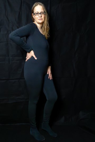 Ein körpernaher Jumpsuit, welcher sowohl als zweite Unterwäsche für kalte Tage geeignet ist, aber auch mit einem Pullover, Hose, Rock oder Hoodiekleid in der Übergangszeit getragen werden kann.
