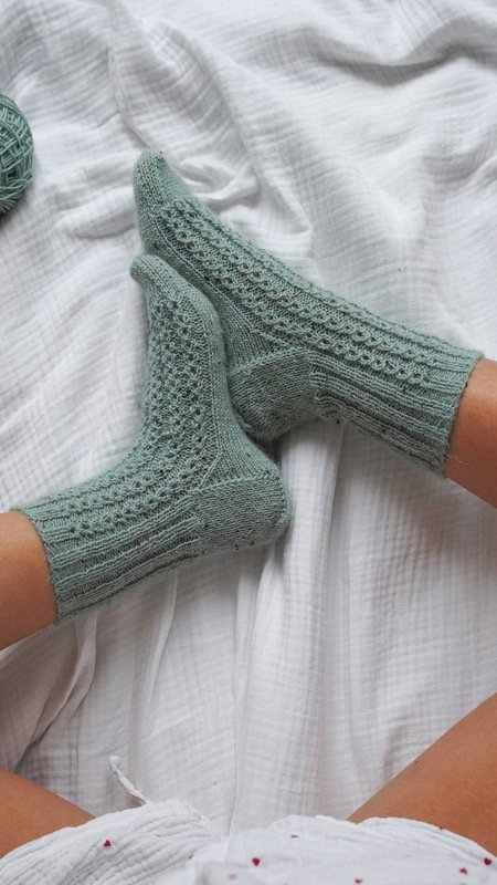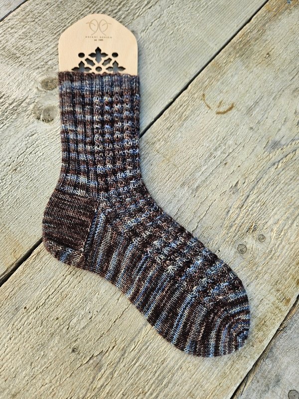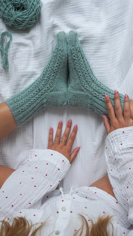 Die JJ Socks No. 1 sind ein detailreiches Strickprojekt für ambitionierte Anfänger*innen und Fortgeschrittene, die Wert auf ein sauberes Maschenbild, präzise Passform und ein wirkungsvolles Strukturmuster legen.