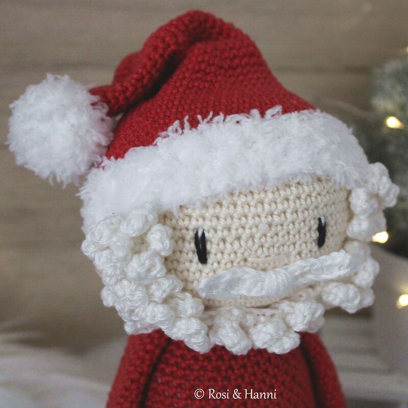 "Mr Claus" wird bei angegebener Wolle und Häkelnadel ca. 22 cm groß (mit Mütze).