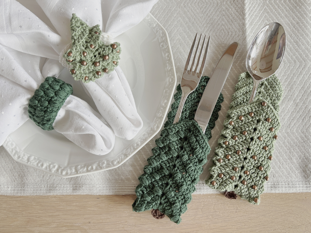 ️ Bestecktaschen und Serviettenringe in Tannenbaum Optik für Weihnachten häkeln.