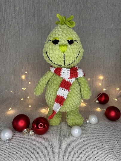 Muffel Noel ist aus Chenillegarn und einer Nadelstärke 4 mm gehäkelt und ist ca. 25 cm groß.