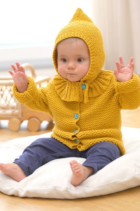Diese Strickanleitung führt dich durch die Herstellung eines bezaubernden Babysets, bestehend aus einer Jacke, einer Mütze und einem Halstuch.
