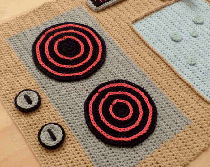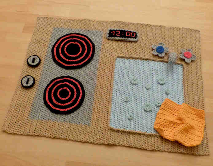 Kleine Kinder imitieren gern die Tätigkeiten der Eltern. In der gehäkelten Spielküche können sogar die Kleinsten völlig gefahrlos ihr Essen selbst kochen oder Geschirr abwaschen, so wie Mama oder Papa es ihnen vormachen. An dem weichen Spielzeug kann man sich nicht verletzen und es geht nicht kaputt, wenn es mal runterfällt!