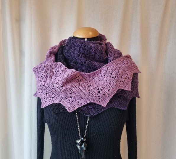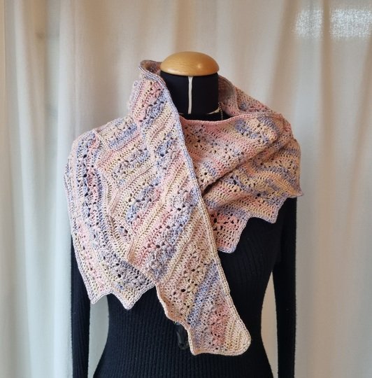 Ein toller Drachenschal für 3- oder 4fädige Bobbel ab 800m und andere Garme mit einprägend einfachem, aber effektvollem Muster im Romanik-Look.