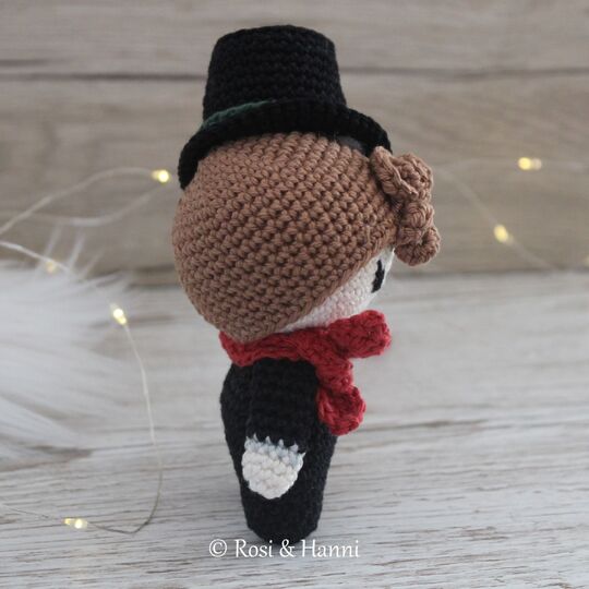 "Schornsteinfeger Ben" wird bei angegebener Wolle und Häkelnadel ca. 13 cm groß (mit Zylinder).