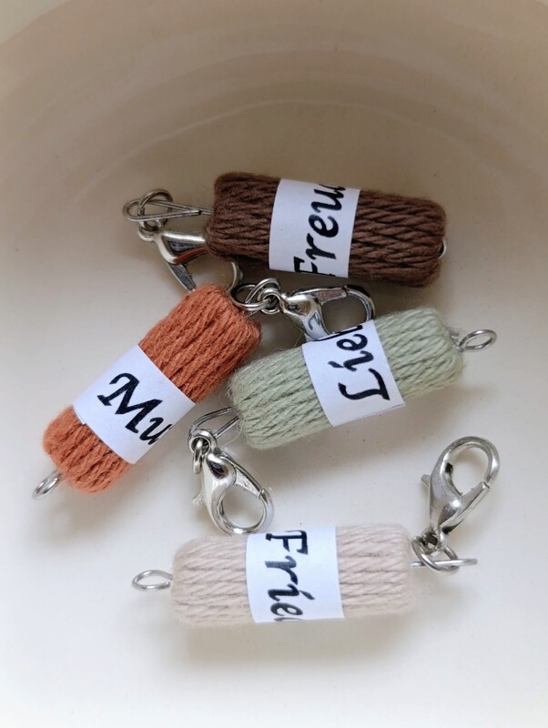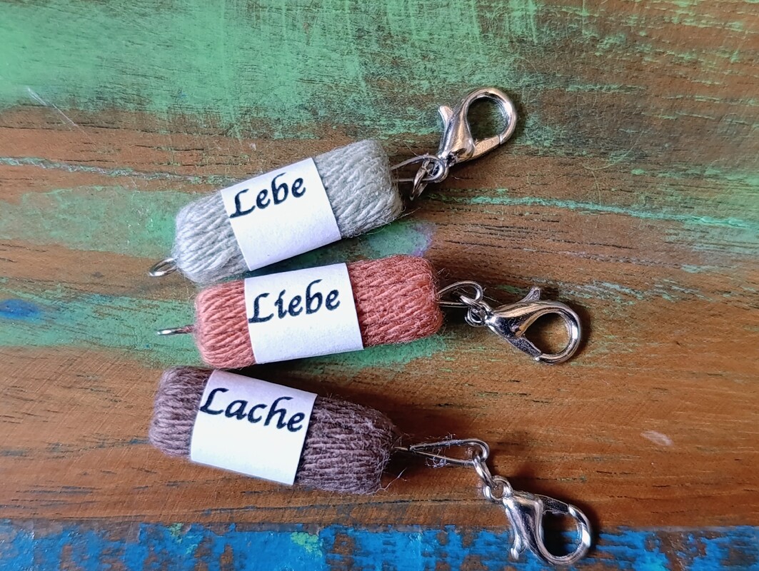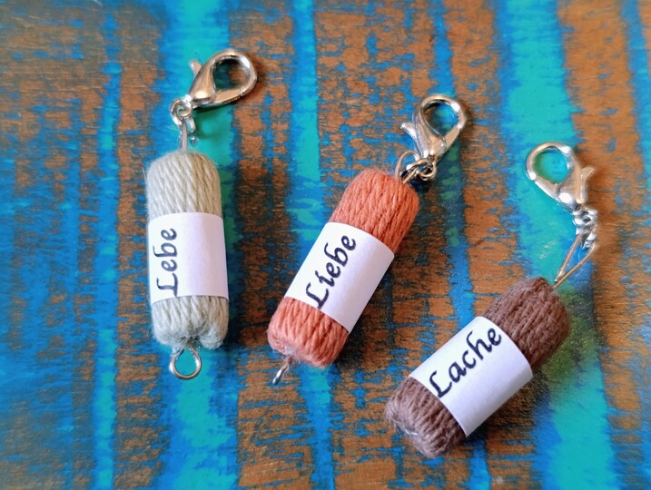 Mit dieser Anleitung kannst du als persönliches Geschenk oder für dich selbst Maschenmarkierer für Häkel- und Strickbegeisterte basteln, die hochwertig aussehen und mit Liebe zum Detail angefertigt werden. Personalisiert werden sie mit Hilfe einer Banderole, die dem Mini- Woll- Anhänger umgelegt wird. Eine Druckvorlage ist in der Anleitung enthalten.