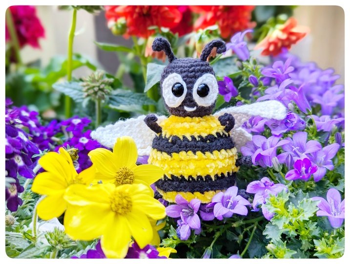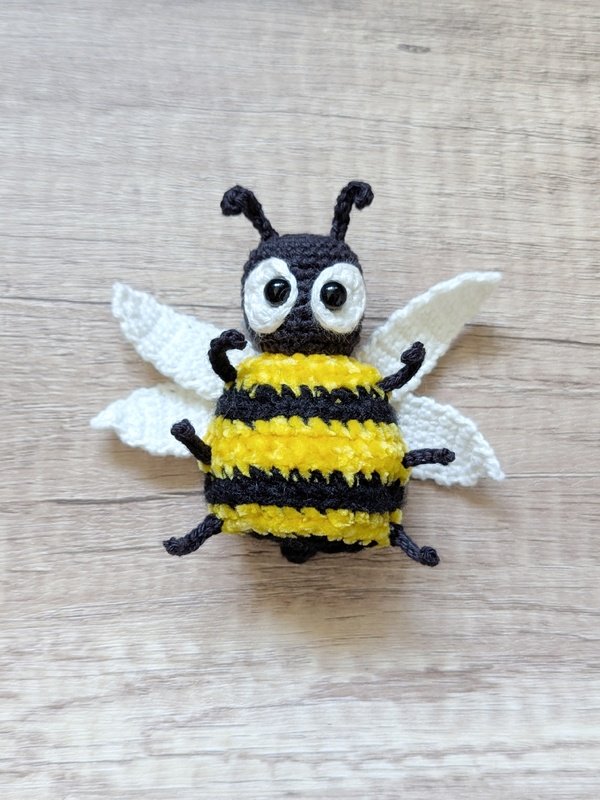 Mit ihrem kleinen Stachel, den kleinen Füßchen und dem großen Bauch wird diese fröhliche Häkelbiene garantiert ein Lächeln auf das Gesicht eines geliebten Menschen zaubern oder deinen Pflanzen mehr Farbe verleihen.