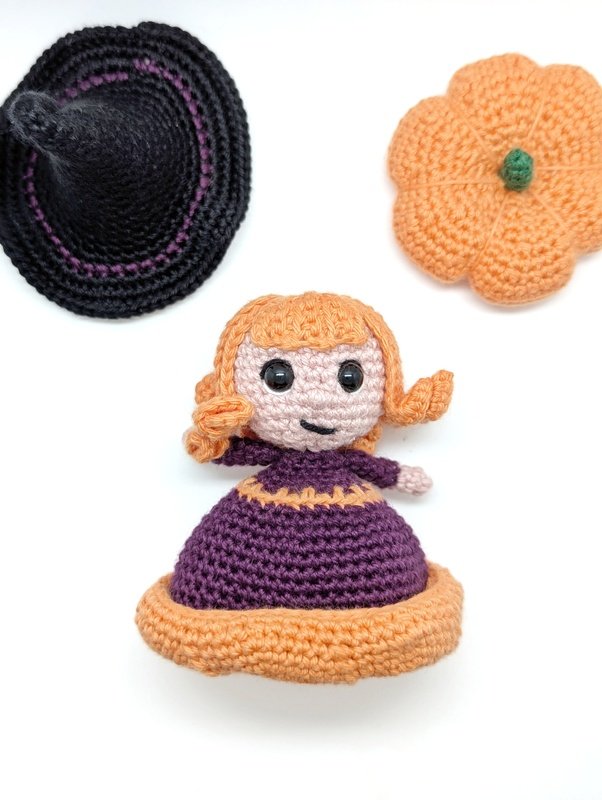 Die Wende-Hexe erreicht eine Größe von 12 cm, als Kürbis 8 cm.