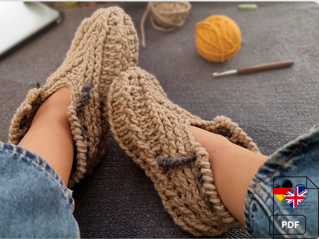 Häkeln Sie gemeinsam mit mir diese gemütlichen und wunderbar nahtlose warmen Hausschuhe. Sie halten Sie an kühlen Herbsttagen und kalten Winterabenden angenehm warm.