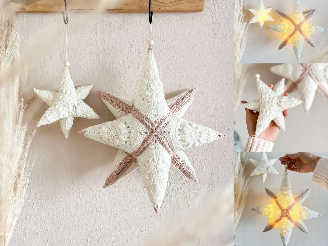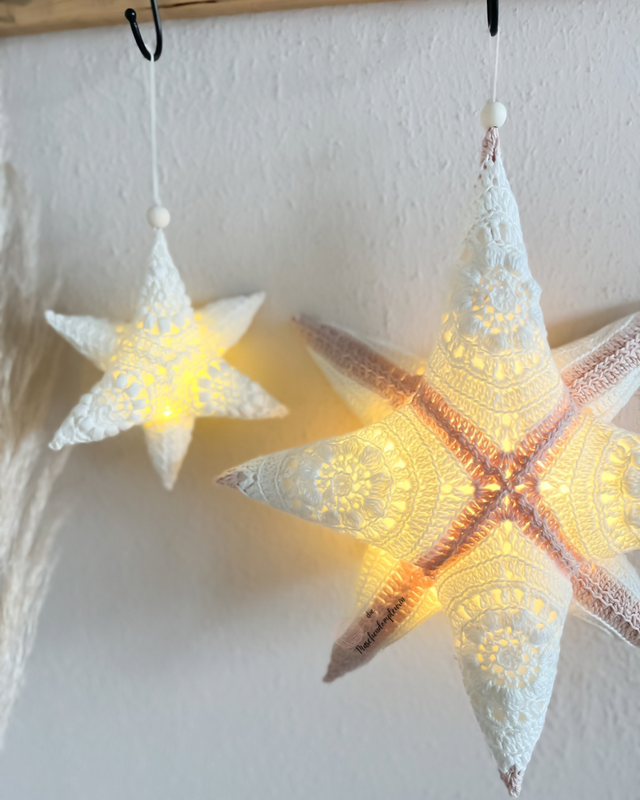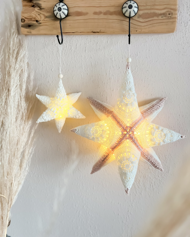 Die Anleitung beinhaltet zwei Größen und zwei Varianten (6 Zacken oder 8 Zacken).
