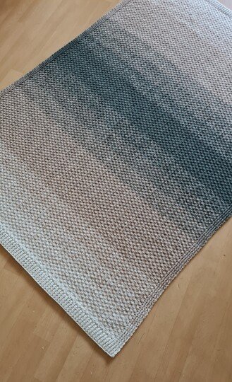 Die Umrandung der Decke wird gleich mitgehäkelt - toll auch für Farbverlaufsgarne. Ich habe hier 2 identische Bobbel, welche 1x von innen nach außen und 1x von außen nach innen verhäkelt werden, verwendet.