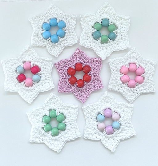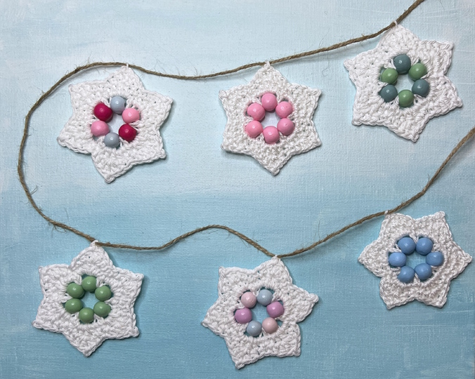 Häkelanleitung Perlensterne PDF – einfache Weihnachtssterne häkeln, Christbaumschmuck & Deko mit Holzperlen, anfängertauglich