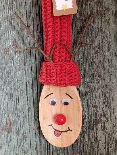 • Wollreste weiß, rot und grün, passende Häkelnadel