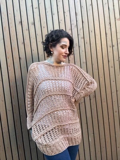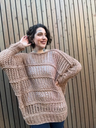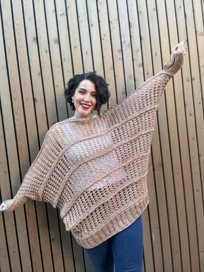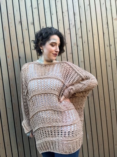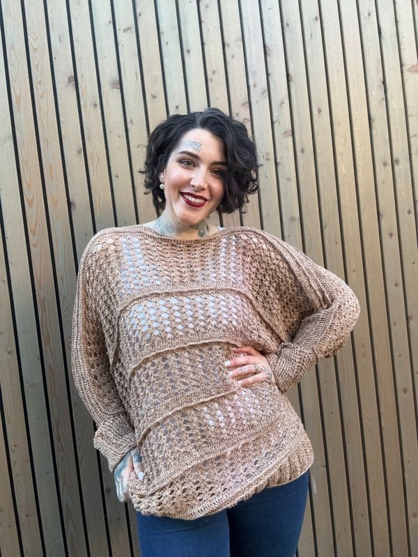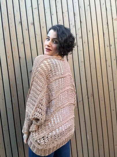 Durch die eingearbeiteten Ärmel ist er besonders anfängerfreundlich – einfach häkeln, genießen und sich auf das Ergebnis freuen. Der Schnitt fällt locker und schmeichelnd, mit einem Hauch von Lässigkeit und dem gewissen Etwas, das ihn zu einem echten Lieblingsstück macht.