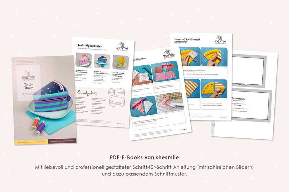PDF-E-Books von shesmile: Diese leicht verständliche Schritt-für-Schritt-Anleitung mit vielen Fotos ist auch für Nähanfänger geeignet, denn die sehr ausführliche Fotoanleitung begleitet dich bei jedem Schritt.
