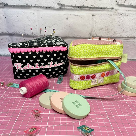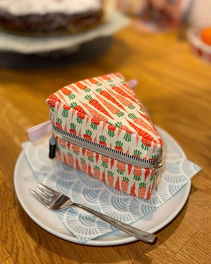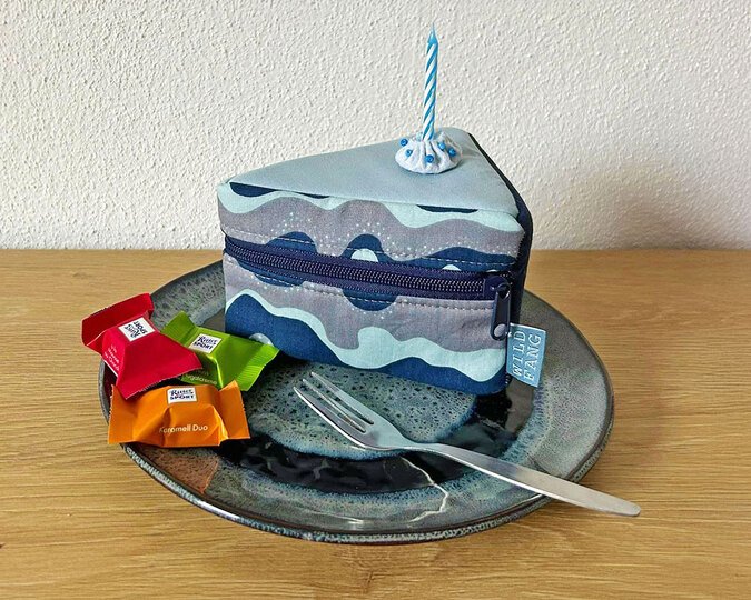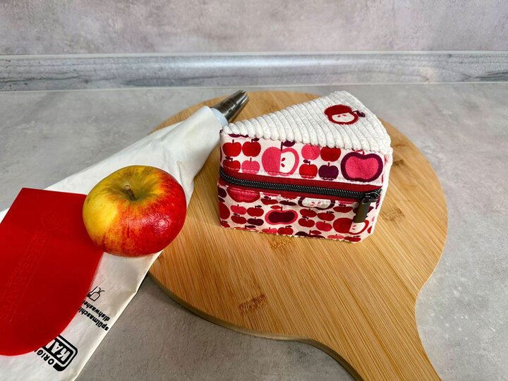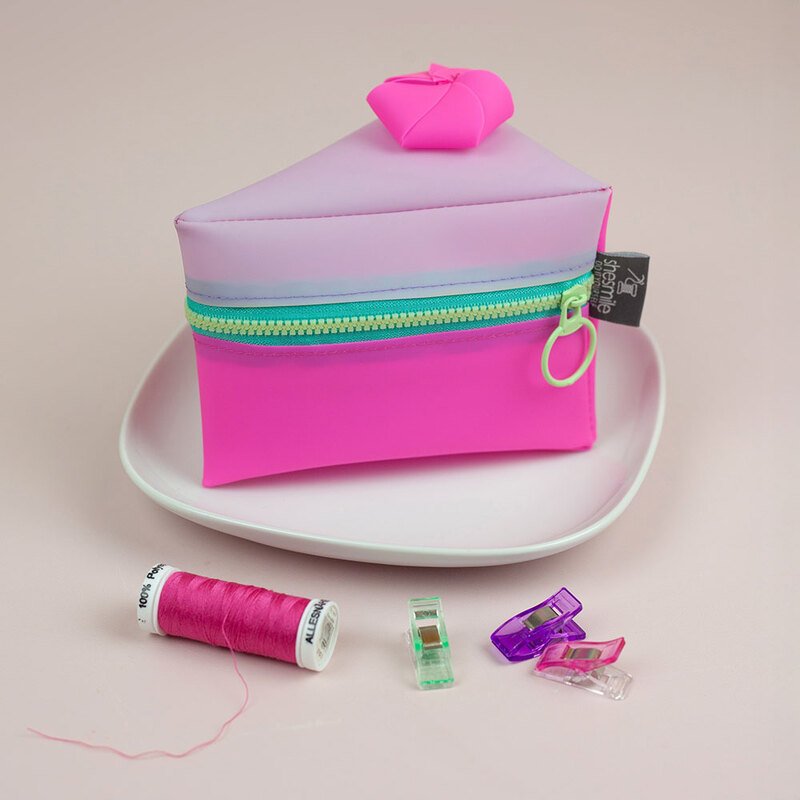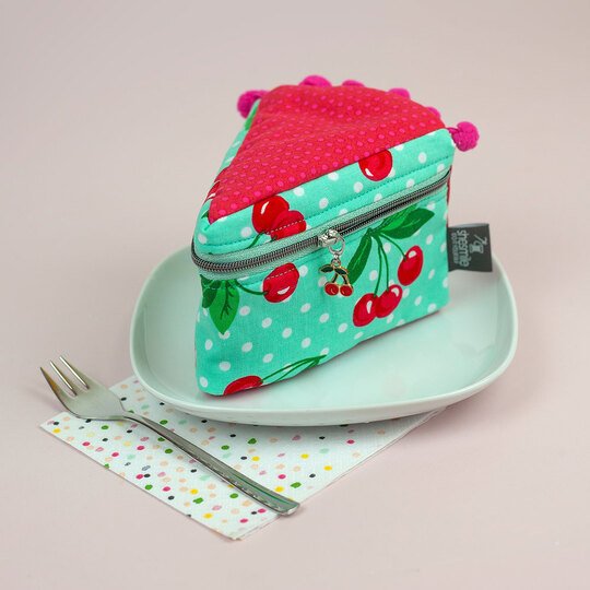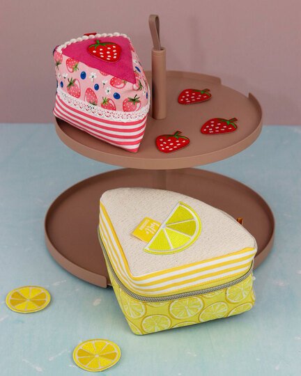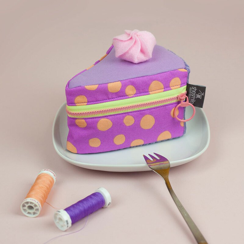 Und wie du es von shesmile kennst, stecken natürlich auch in diesem Schnittmuster wieder jede Menge kreative Zusatzfunktionen: Nähe die Torte oder einzelne Stücke mit Reißverschluss und verwandle sie so in eine praktische Aufbewahrung oder eine ganz besondere Verpackung für Geschenke und Süßkram. Auch lassen sich hier prima Backförmchen, Streusel oder Nähzubehör verstauen. Die ganze Torte ist eine prima Hülle für eine Springform in ø 26 cm Größe. Das Viertel ist eine ideale Aufbewahrungstasche für das Mini-Bügeleisen von Prym.