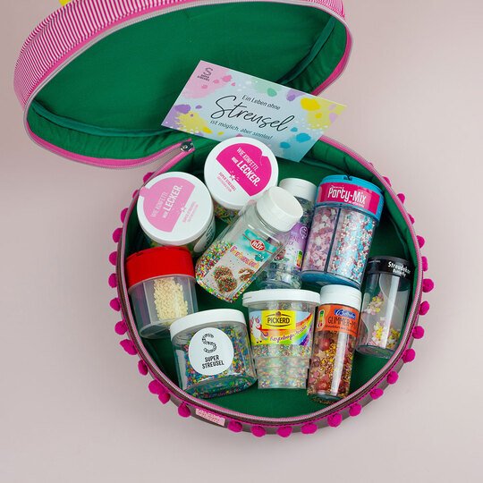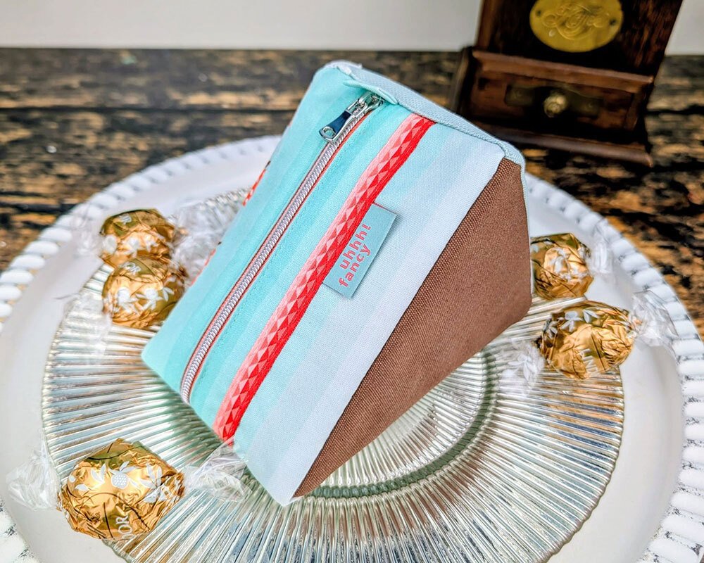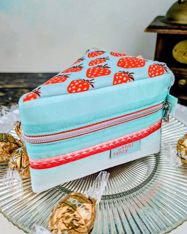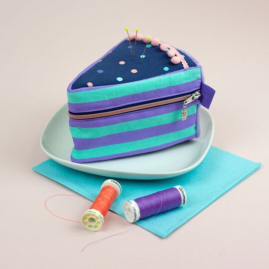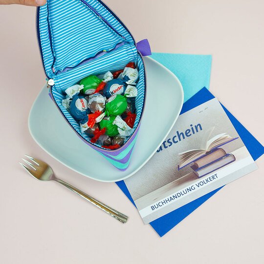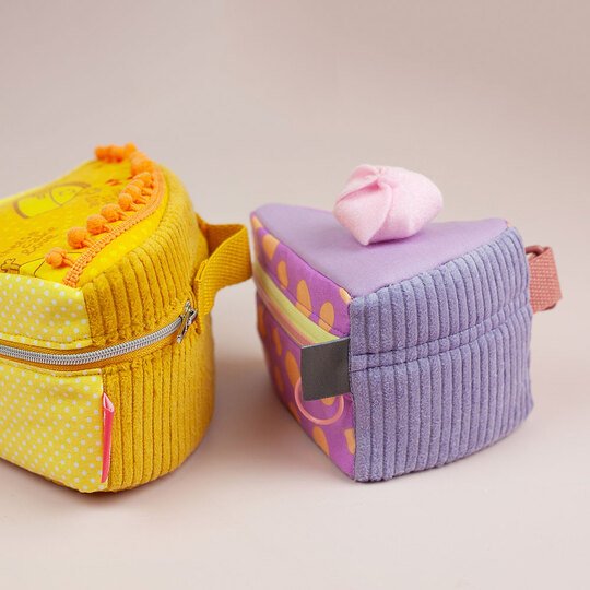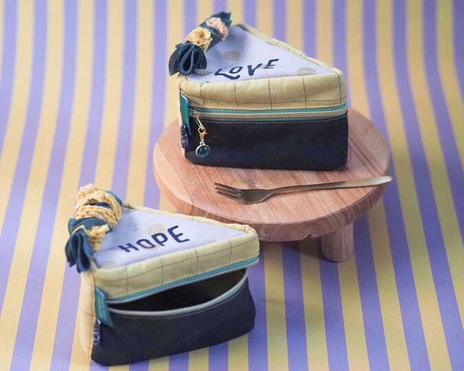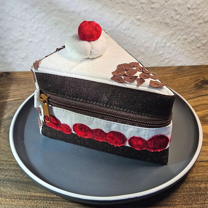Und wie du es von shesmile kennst, stecken natürlich auch in diesem Schnittmuster wieder jede Menge kreative Zusatzfunktionen: Nähe die Torte oder einzelne Stücke mit Reißverschluss und verwandle sie so in eine praktische Aufbewahrung oder eine ganz besondere Verpackung für Geschenke und Süßkram. Auch lassen sich hier prima Backförmchen, Streusel oder Nähzubehör verstauen. Die ganze Torte ist eine prima Hülle für eine Springform in ø 26 cm Größe. Das Viertel ist eine ideale Aufbewahrungstasche für das Mini-Bügeleisen von Prym.