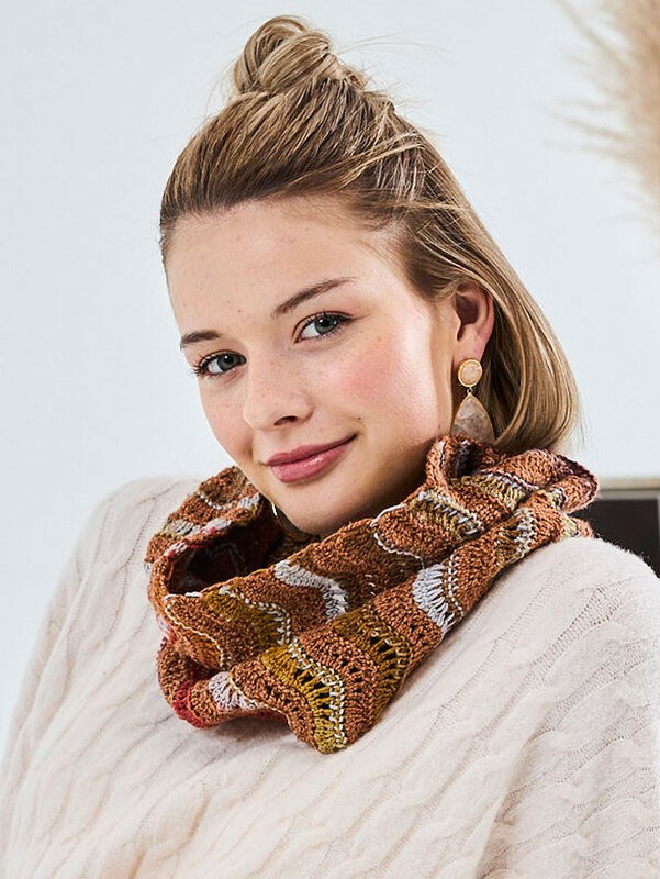 Dieser herrlich weiche Loop verwöhnt dich mit warmen Erdtönen und einem sanften Wellenmuster, das sofort Gemütlichkeit ausstrahlt. Die hochwertige Mischung aus Merino Silk Socks und Paint Socks sorgt für ein angenehmes Tragegefühl – leicht, warm und luxuriös zugleich.