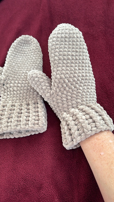Die Anleitung ist so konzipiert, dass die Handschuhe für jede Grösse passend gehäkelt werden können. Und du benötigst nur 1 Knäuel Chenillewolle (100g/120m).
