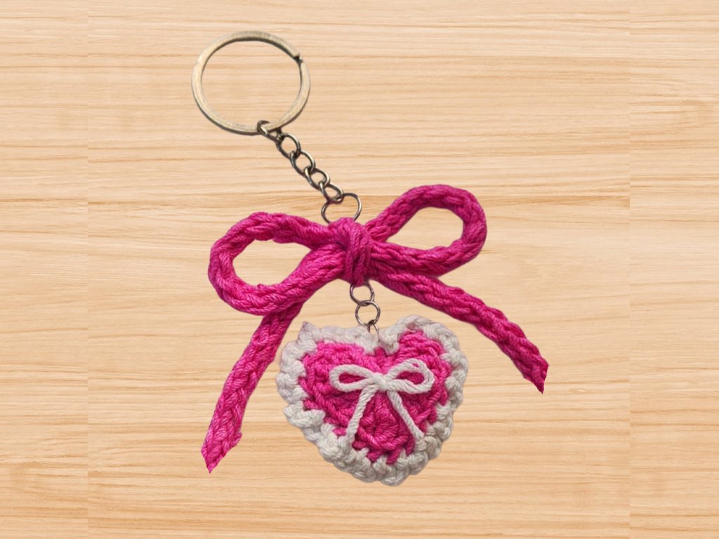 Erstelle einen charmanten Herz- und Schleifen-Schlüsselanhänger mit dieser detaillierten PDF-Anleitung.