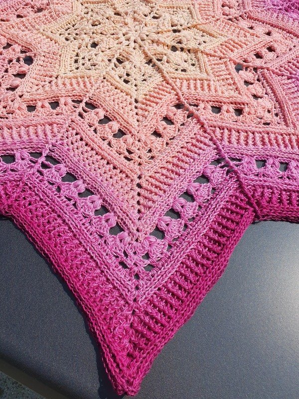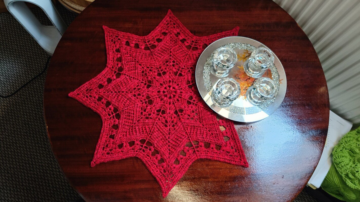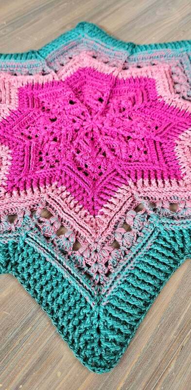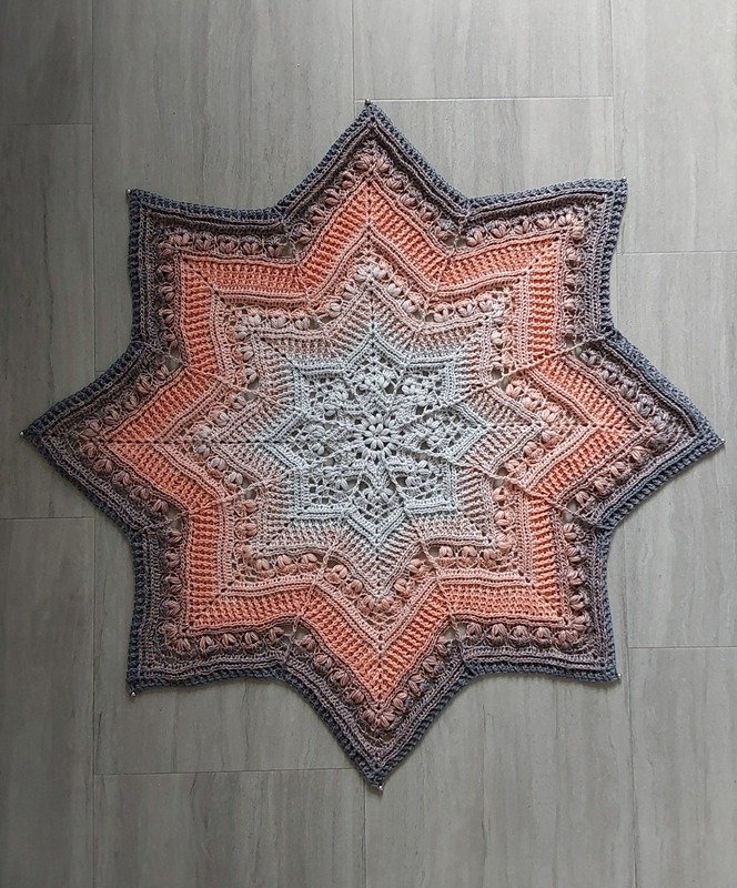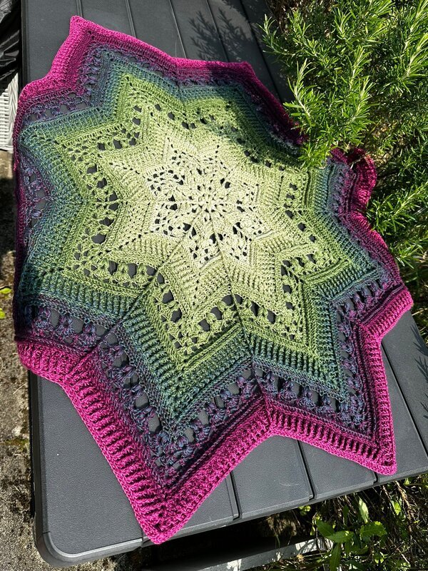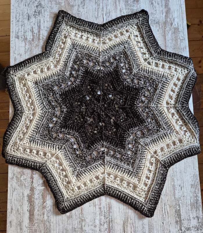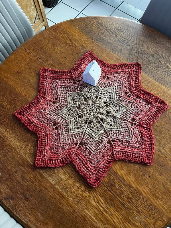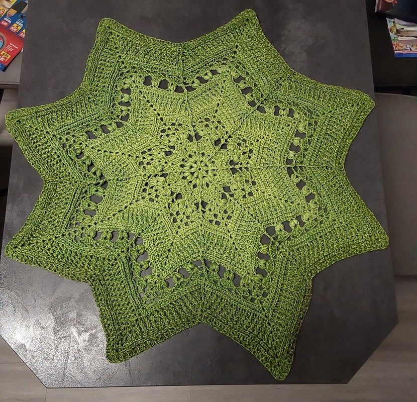 Astraia ist ein zauberhaftes Deckchen in Sternenform, das in jeder beliebigen Größe gehäkelt werden kann, da sich die Reihen wiederholen.