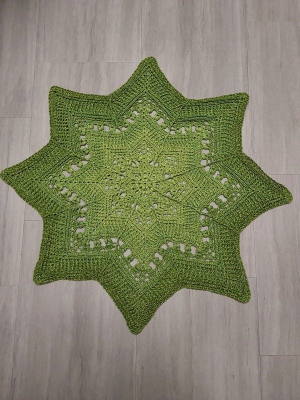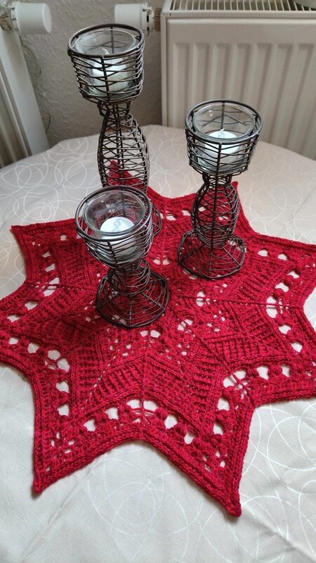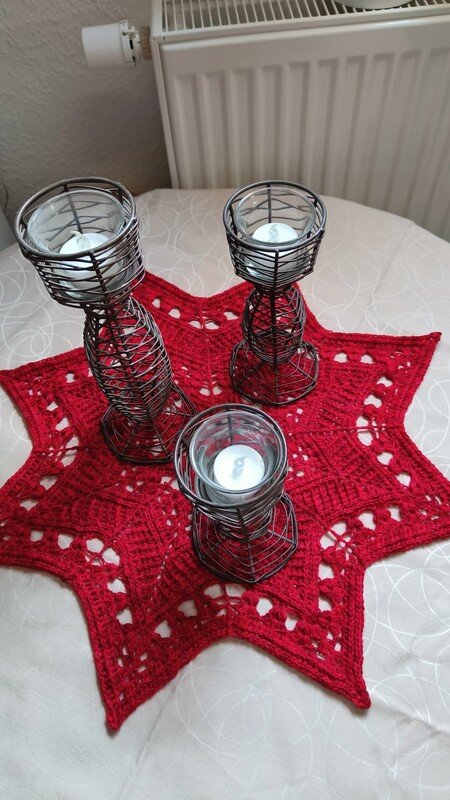 Das Sternchen kann in jeder beliebigen Größe gehäkelt werden, da sich die Reihen wiederholen. Bitte beachte, wenn du eine andere Wolle verwendest, eine andere Nadelstärke, oder generelle lockerer/fester häkelst, kann die Größe variieren.