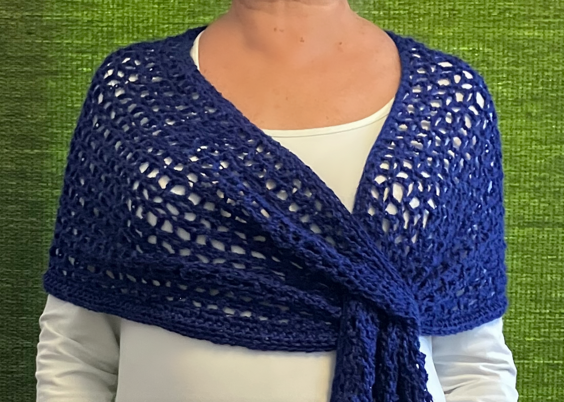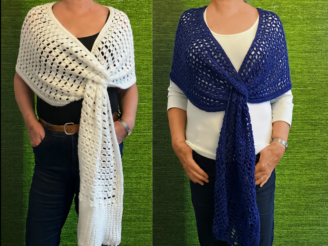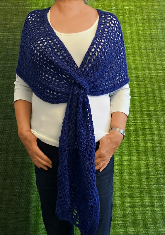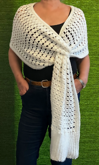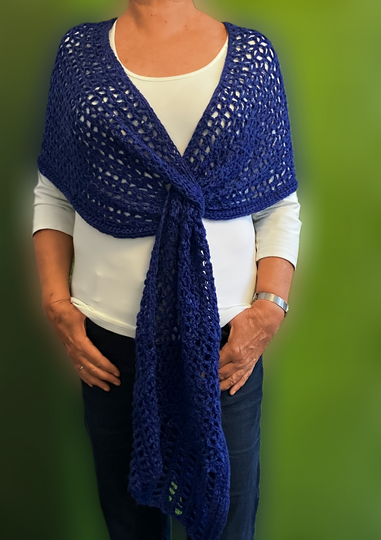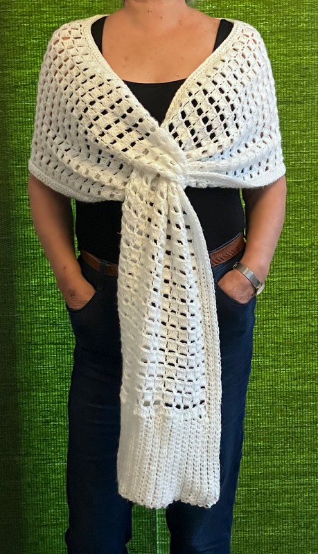 Der Schal ist größenneutral. Hast du ein breites Kreuz machst du ihn ein wenig länger, damit er vorne nach vor lässig fällt.
