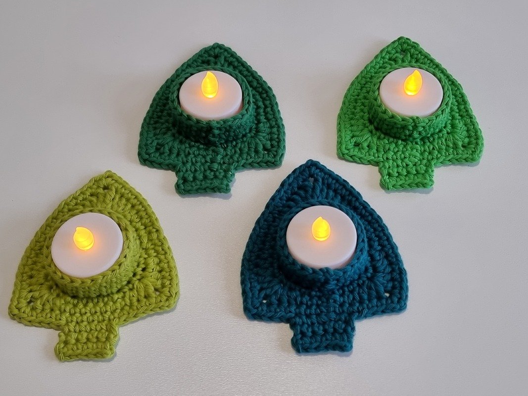 Eine festliche Häkelanleitung für ein dekoratives LED-Teelicht in Tannenbaumform – perfekt für die Adventszeit, den Weihnachtstisch oder als kleines selbstgemachtes Geschenk. Das Projekt ist schnell gemacht, anfängerfreundlich und bringt durch das warme LED-Licht gemütliche Winterstimmung ins Zuhause. Ideal als Teil eines Deko-Sets, zum Beispiel zusammen mit kleinen Schlitten- oder Holzfiguren.