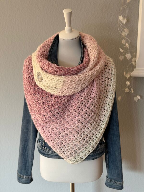 Das verwendete Muster besticht durch seine Leichtig- und Fluffigkeit, kann von beiden Seiten getragen werden.