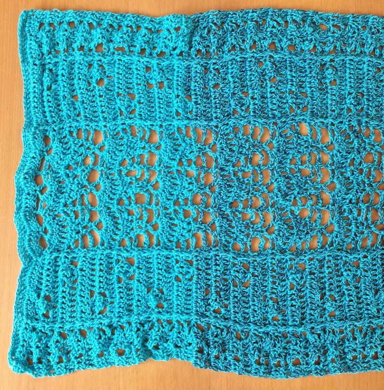 Aufgrund des luftigen Musters muss die Nadelstärke unbedingt zum Garn und zur Häkelweise passen.