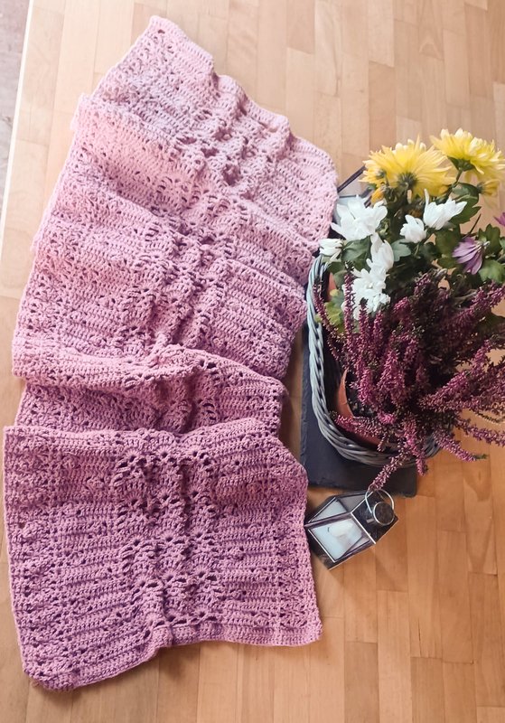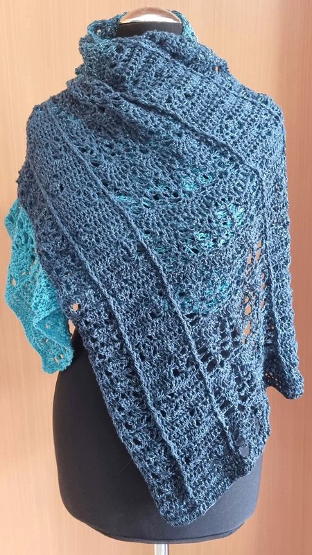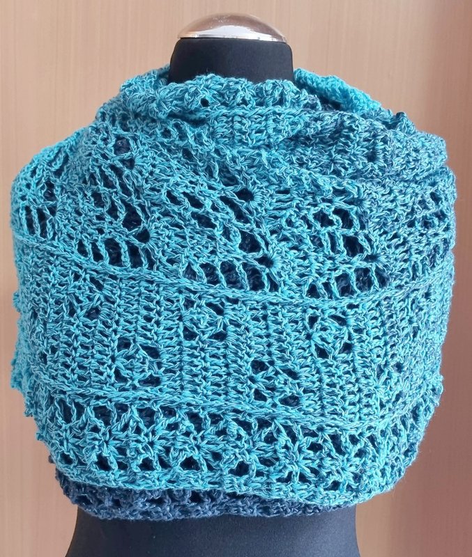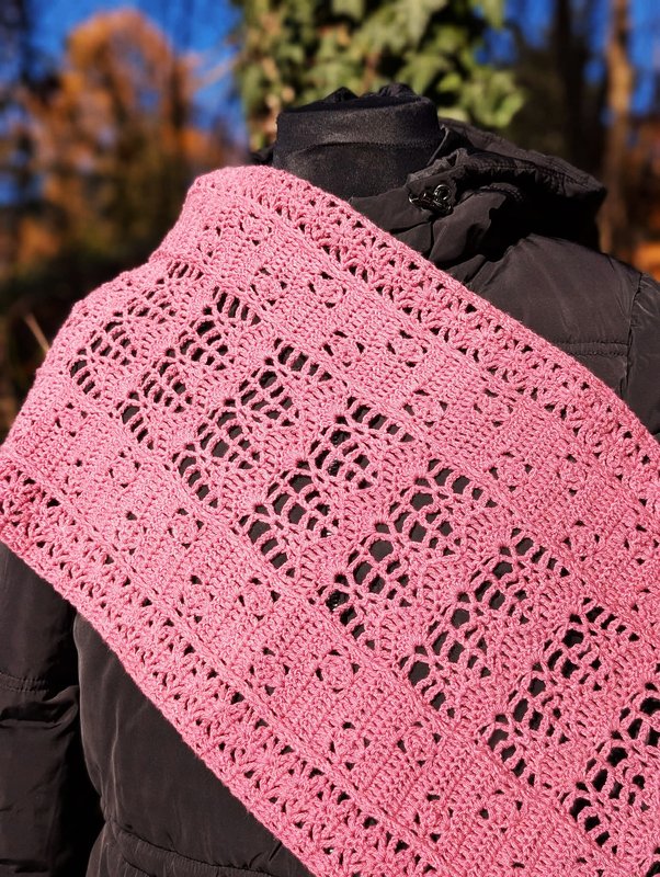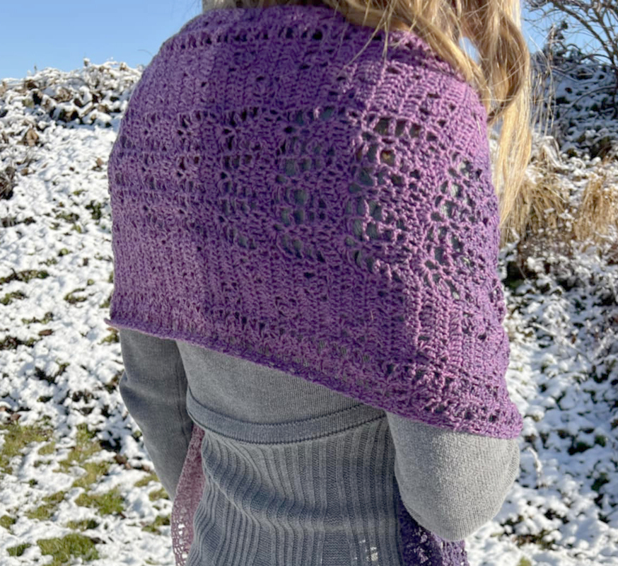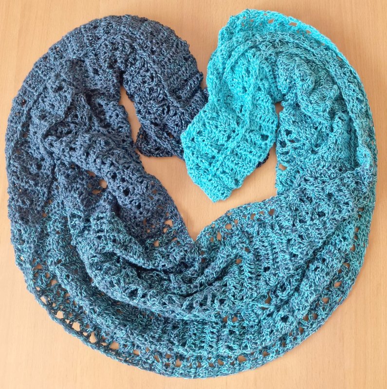 Trotz des luftigen Musters fühlt er sich warm und kuschelig an. Mit anderem Garn kannst du ihn als luftiges Sommeraccessoire arbeiten.