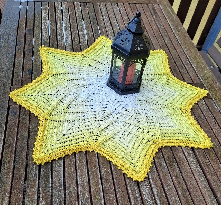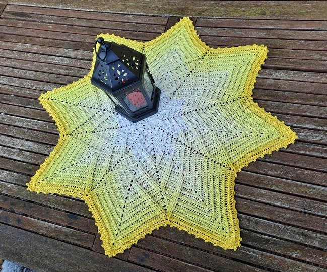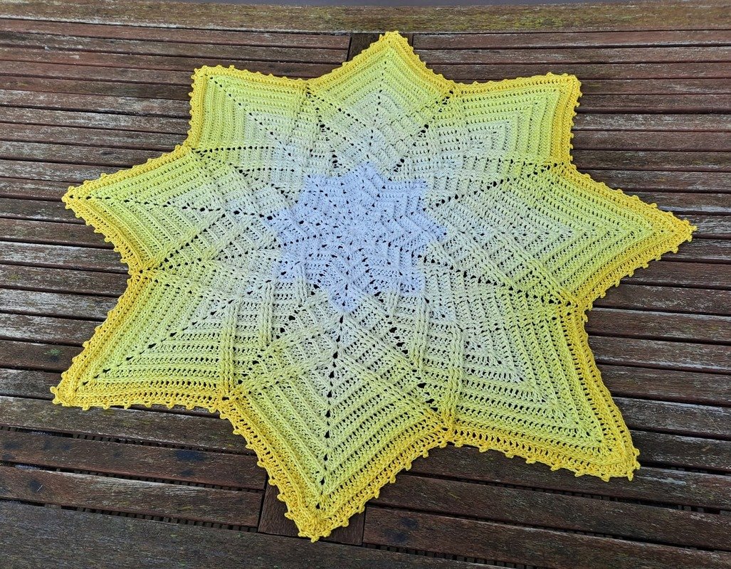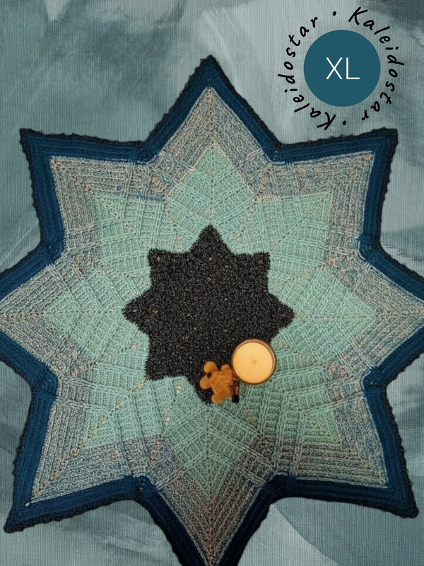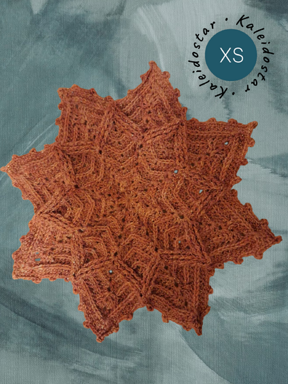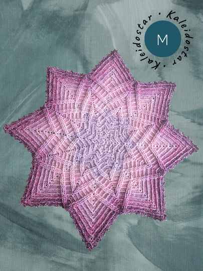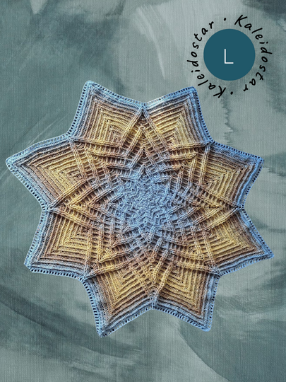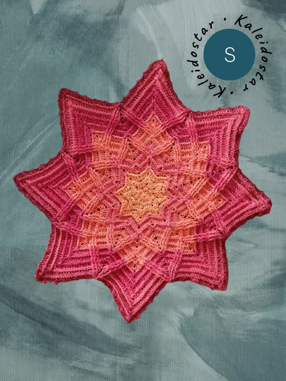 Kaleidostar ist ein vielseitiges Sternendeckchen, das in mehreren Größen gehäkelt werden kann. Das Design eignet sich ideal für drei- oder vierfädiges Bobbelgarn sowie für Filetgarn vergleichbarer Stärke.