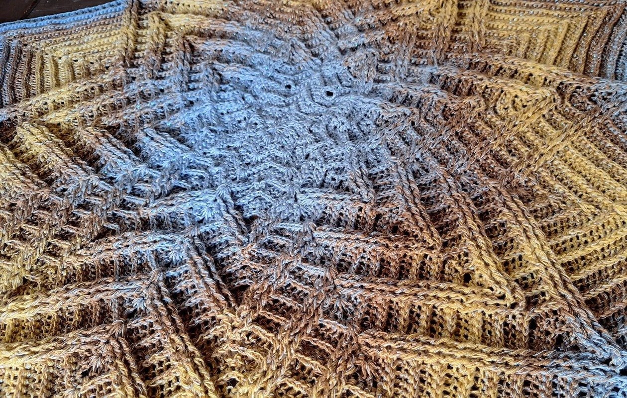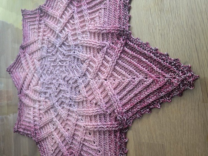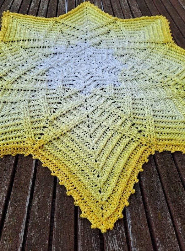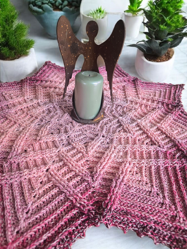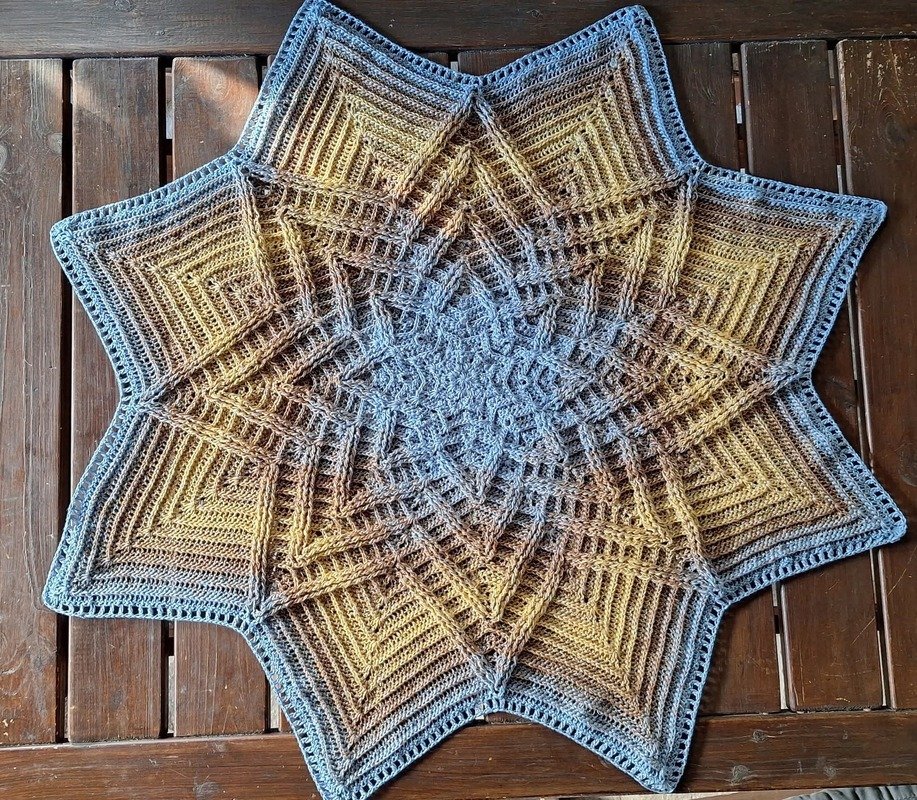 Durch die besondere Anordnung der Maschen entstehen acht klare Zacken und im Inneren eine reliefartige Maserung, die an ein Kaleidoskop erinnert und dem Deckchen seinen charakteristischen Look verleiht.