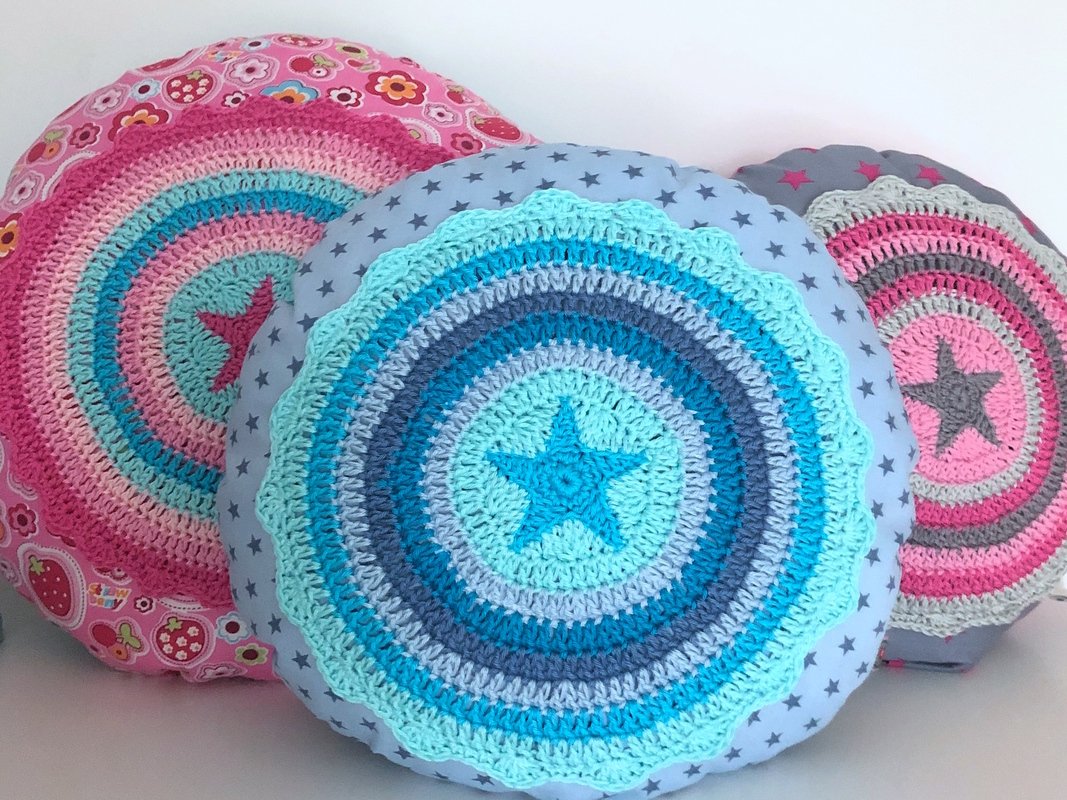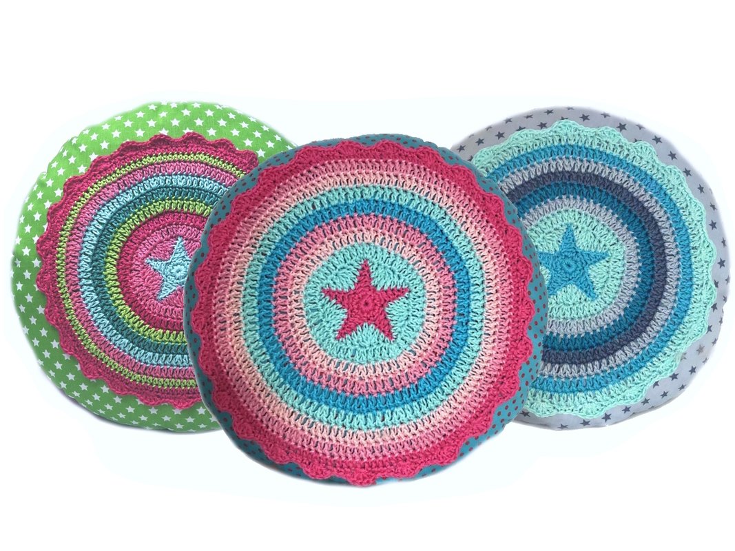 Häkelanleitung Sternkissen Shabby Stars Kissen, Rundkissen mit Stern Motiv, inkl. Nähanleitung, PDF