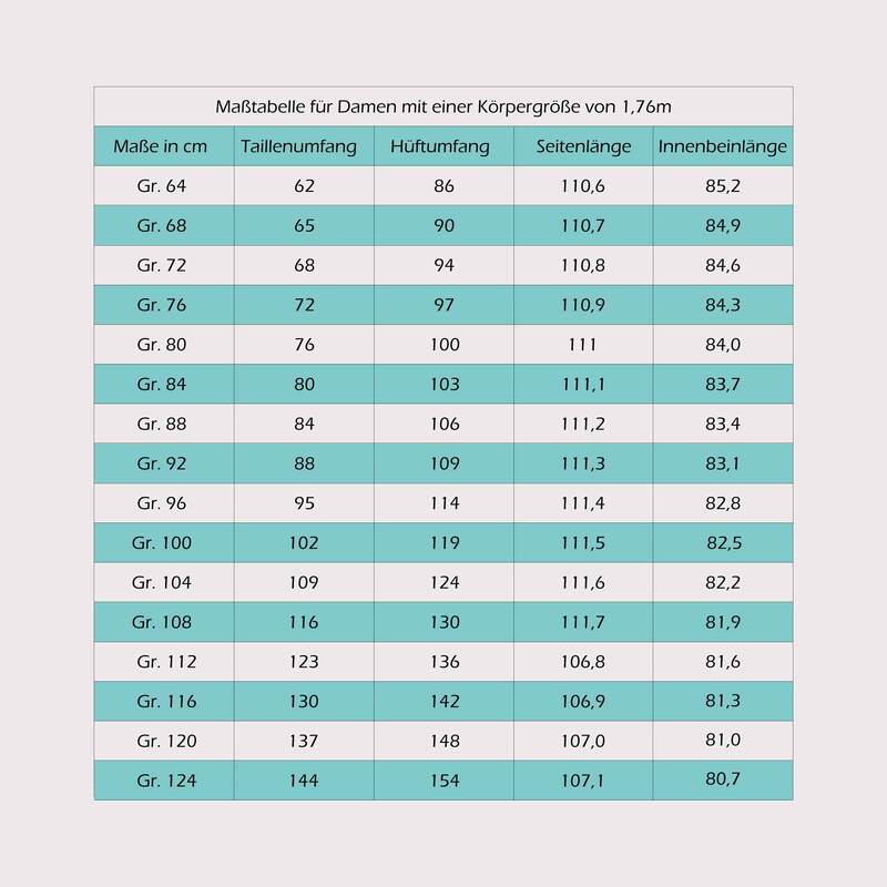 Im Schnittmuster enthalten sind die Damengrößen 64 - 124 (ausgelegt auf 1,76m Körpergröße)