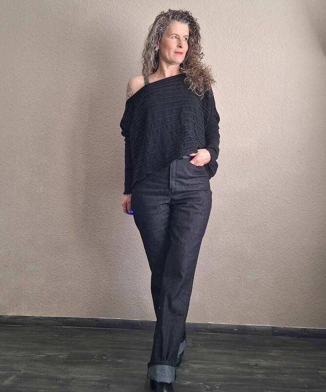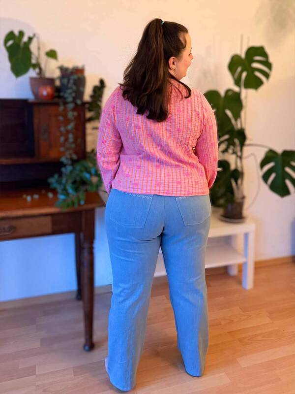 Dieses Schnittmuster für eine Damen High Waist Bootcut Jeans aus Jeansstoffen mit max. 3% Elasthan und 2 verschiedenen Taschenformen für einen klassischen und einen besondereren Look, trägt den schönen Namen "Der blaue Pfad". Das Schnittmuster beinhaltet natürlich eine ausführliche Anleitung und die Damen Größen 64 - 124 ausgelegt auf eine Körpergröße von 1,76m.