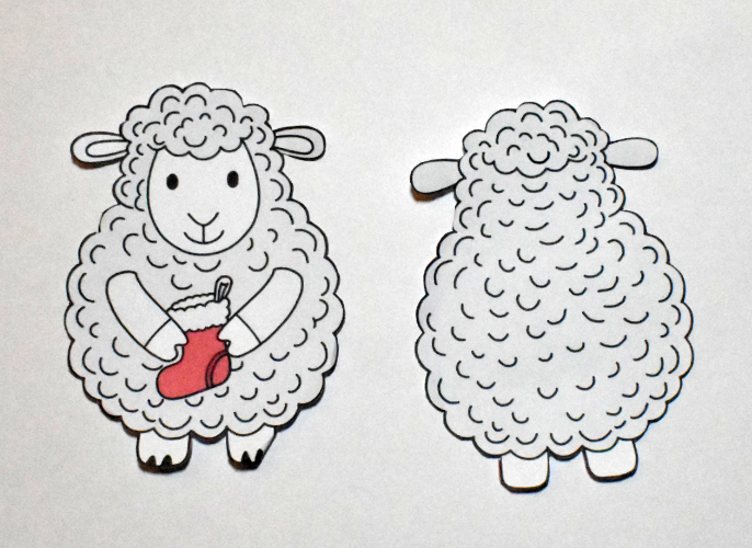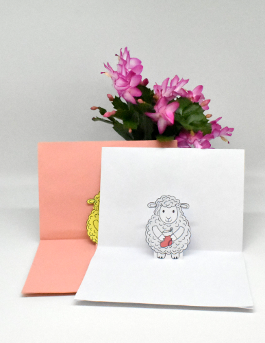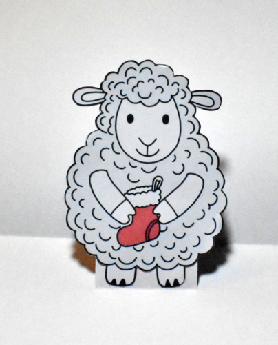 Sie besteht aus der Weihnachtskarte, einem Schaf und einem Schnittmuster für den Pop-Up-Effekt.