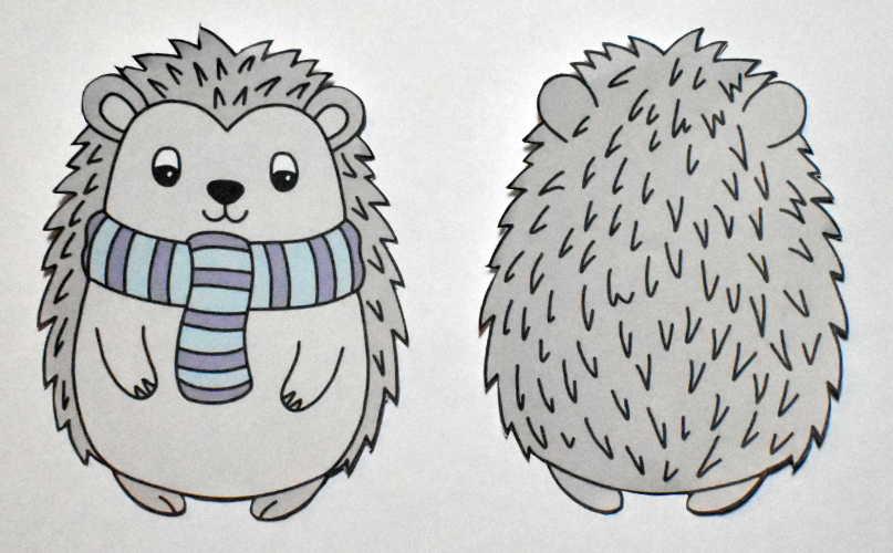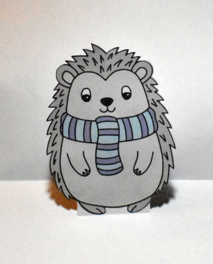 Sie besteht aus der Weihnachtskarte, einem Igel und einem Schnittmuster für den Pop-Up-Effekt.