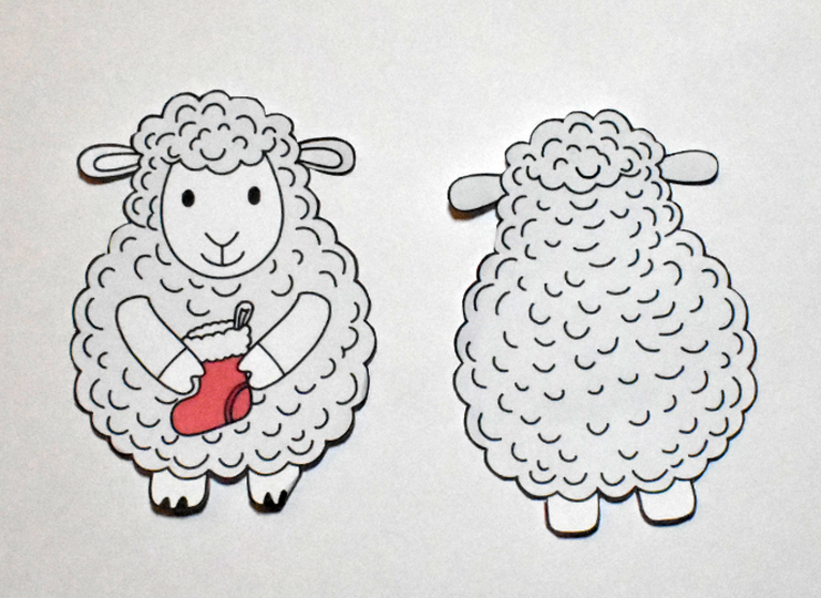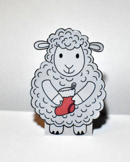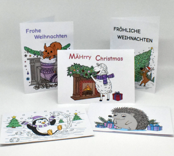 Jedes der 5 Kartenmotive besteht je aus der Weihnachtskarte, einer Figur und einem Schnittmuster für den Pop-Up-Effekt.