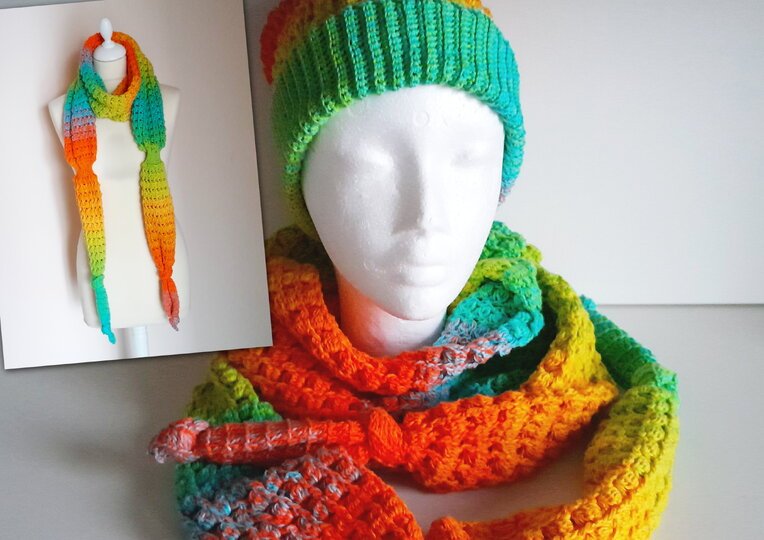 Dann liegst du mit der Anleitung zum Schal "Kunterbunt" genau richtig.