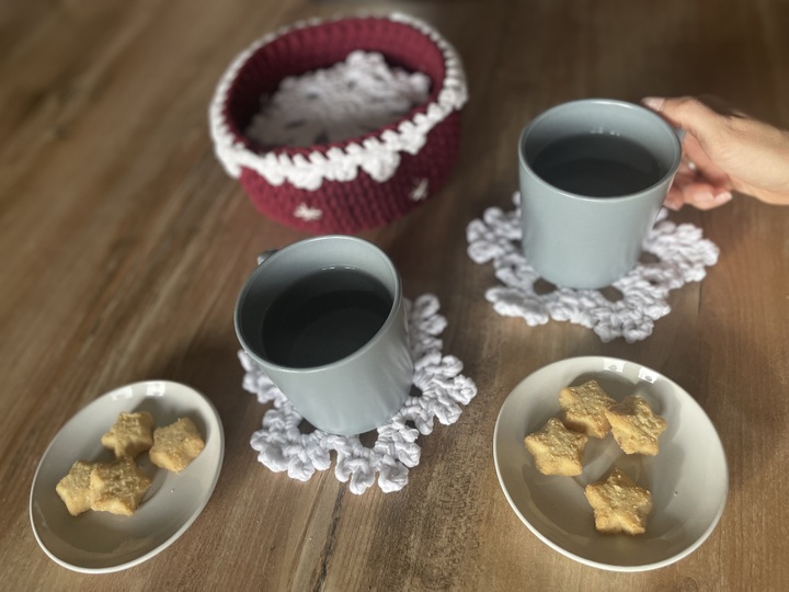 Hol dir den Winter nach Hause: Mit diesem Schneeflocken-Set häkelst du 6 große Schneeflocken-Untersetzer und ein passendes Körbchen – perfekt als Weihnachtsdeko, kleines Geschenk, Tischdekoration oder liebevolle Winteridee zum Verschenken.