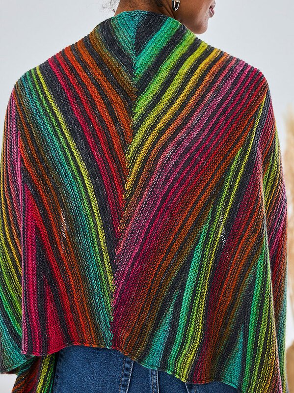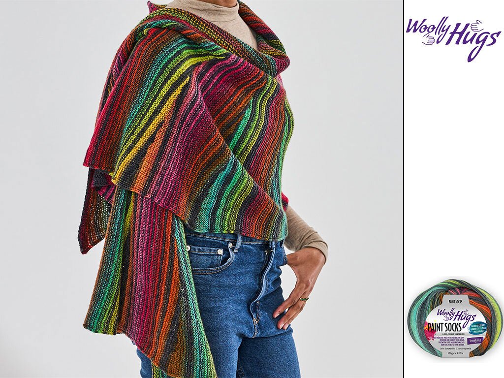 Ein Knäuel Woolly Hugs PAINT SOCKS, lauter rechte Maschen – zack, fertig ist mein riesiges, mega-buntes Lieblingstuch! Die Farben zaubern die Streifen ganz allein, super weich und einfach nur wow. Schnapp dir das tolle Garn und strick los – du wirst es lieben!