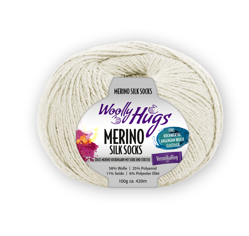 Woolly Hugs MERINO SILK SOCKS (58 % Schurwolle (Merino), 25 % Polyamid, 11 % Seide, 6 % Polyester Elité, Lauflänge ca. 420 m/100 g): Farbe A: 300 g in Beige (Farbe 205)
