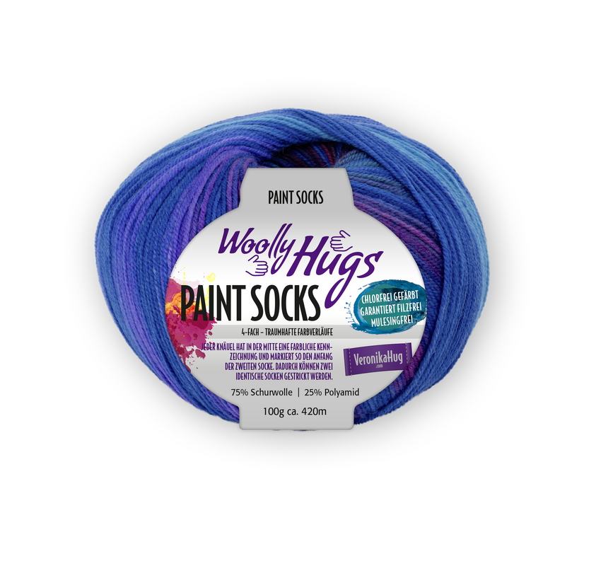 Woolly Hugs PAINT SOCKS (75 % Schurwolle, 25 % Polyamid, Lauflänge ca. 420 m/100 g): Farbe B: 300 g in Blau/Lila (Farbe 209)