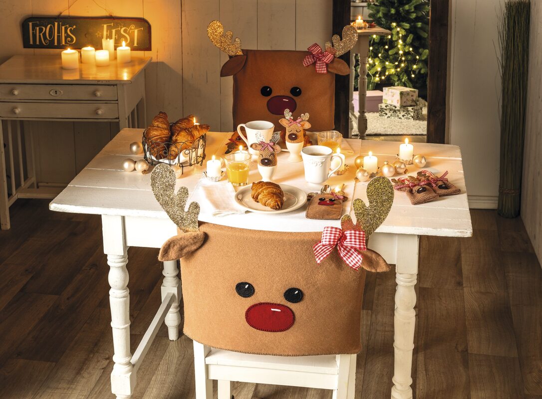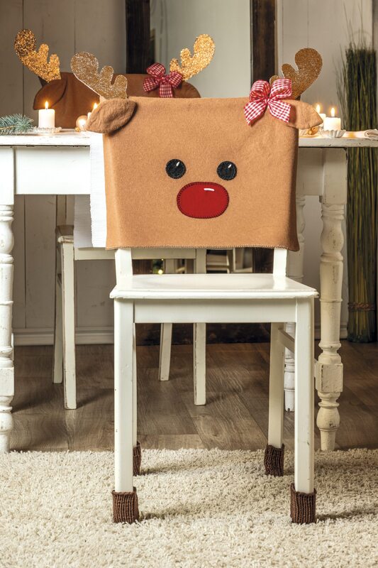 Ihre Stühle werden in Sekunden zu den süßesten Rentieren mit Glitzergeweih, roter Nase & Schleife. Kuscheliger Filz, passt auf fast alle Stühle, waschbar, wiederverwendbar.