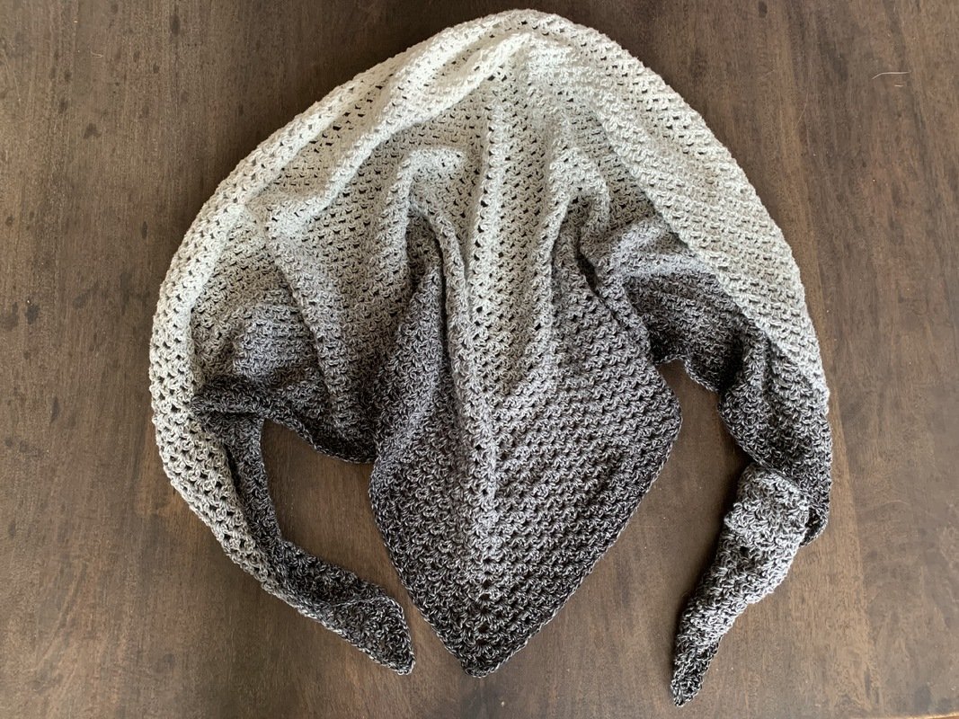Ich habe nicht den gesamten Bobbel verbraucht. Die letzten Nuancen von Anthrazit bis Schwarz sind nicht mehr in meinem Tuch enthalten. Du kannst natürlich auch den gesamten Bobbel verarbeiten.