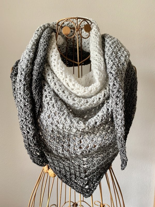 Du kannst das Dreieckstuch in jeder beliebigen Größe häkeln. Häkle einfach das Endlosmuster nach Beschreibung bzw. Häkelschrift so lange weiter, bis Dein Garn zuende ist oder das Tuch die gewünschte Größe erreicht hat.